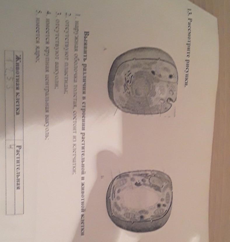 для животных: 3(но это не совсем корректно, вакуоли есть и у животных, и у растительных клеток. возможно имелась ввиду большая вакуоль у растений)5