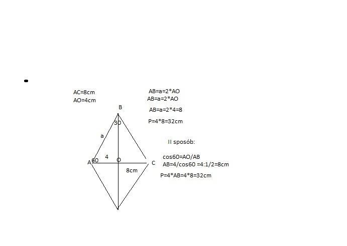 abcd ромб o точка пересечения его диагоналей .меньшая диагональ AC равна 8 см угол OBA=30 найти периметр ромба