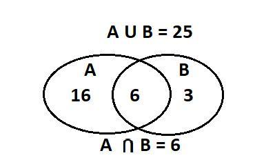 Если n(A) = 16; n(B) = 3; n(A∪B) = 25, то n(A∩B) = ? Изобразите эти множество с помощью диаграмм Эйлера-Венна.