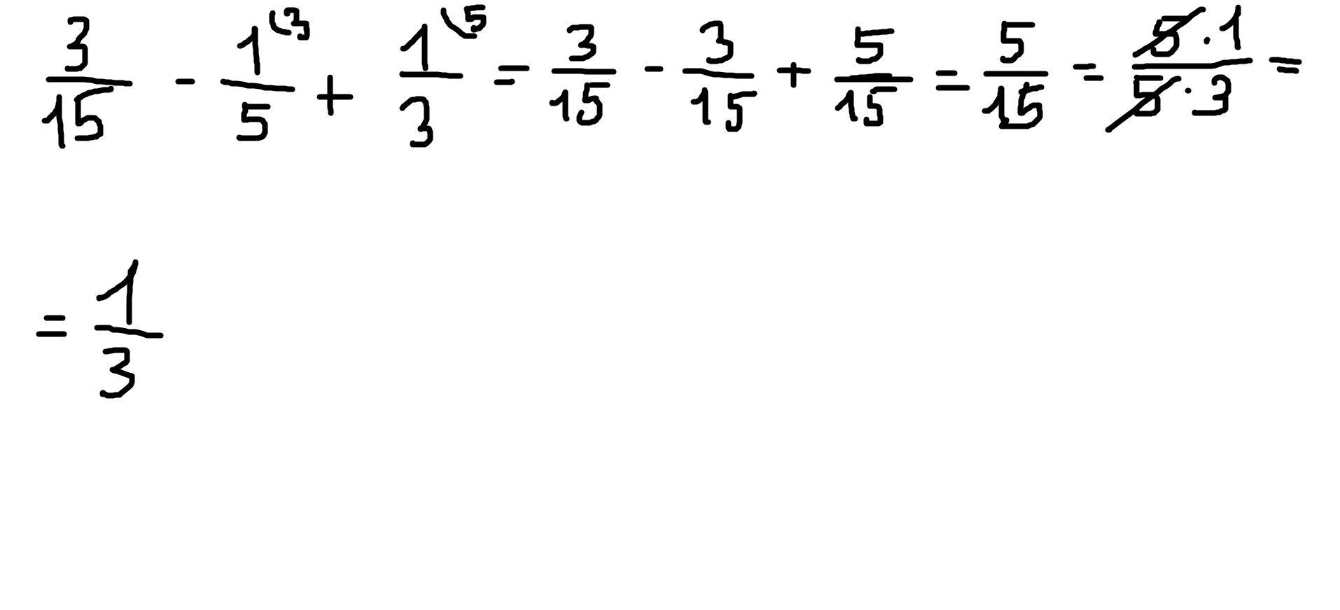 Ответ: 3 / 15 - 1/5 + 1/3=1/3
