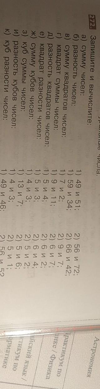 в) Сумма квадратов - это когда квадраты чисел(вторая степень числа) складываются. Ответ: 9² + 11²