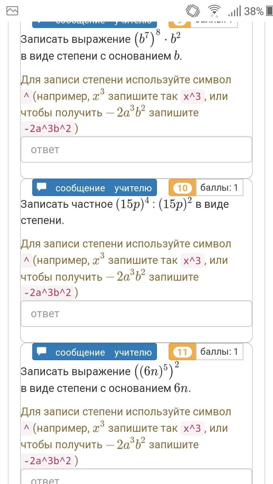 в виде степени с показателем