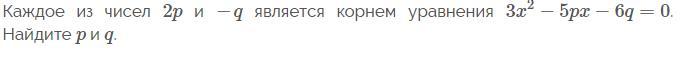 Введем обозначения х₁=2p и х₂=-q. По теореме Виета для уравнения 3x²-5px-6q=0 имеет место: