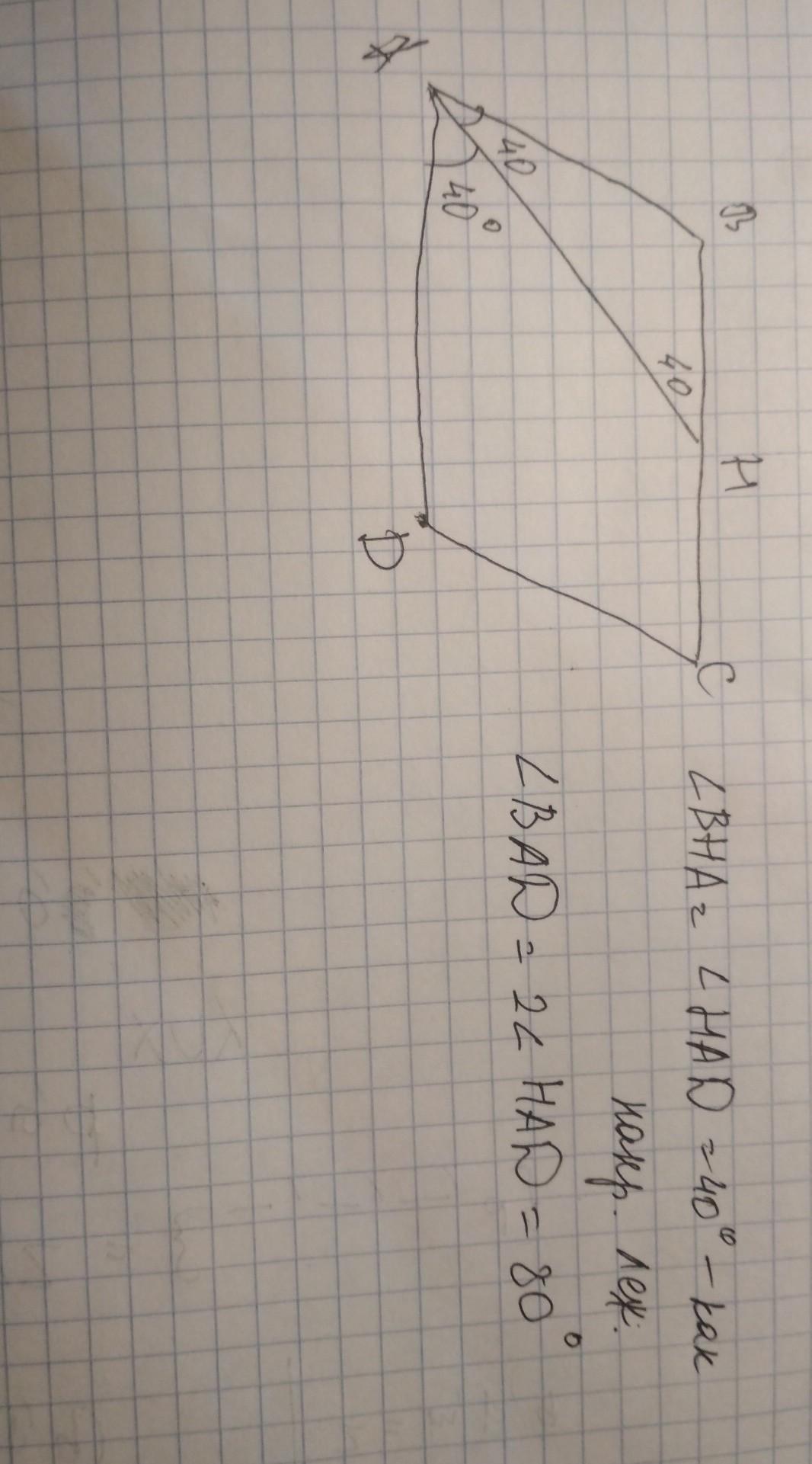 ABCD - параллелограмм, AH - биссектриса, угол BHA 40 градусов. Найти острые угол параллелограмма.