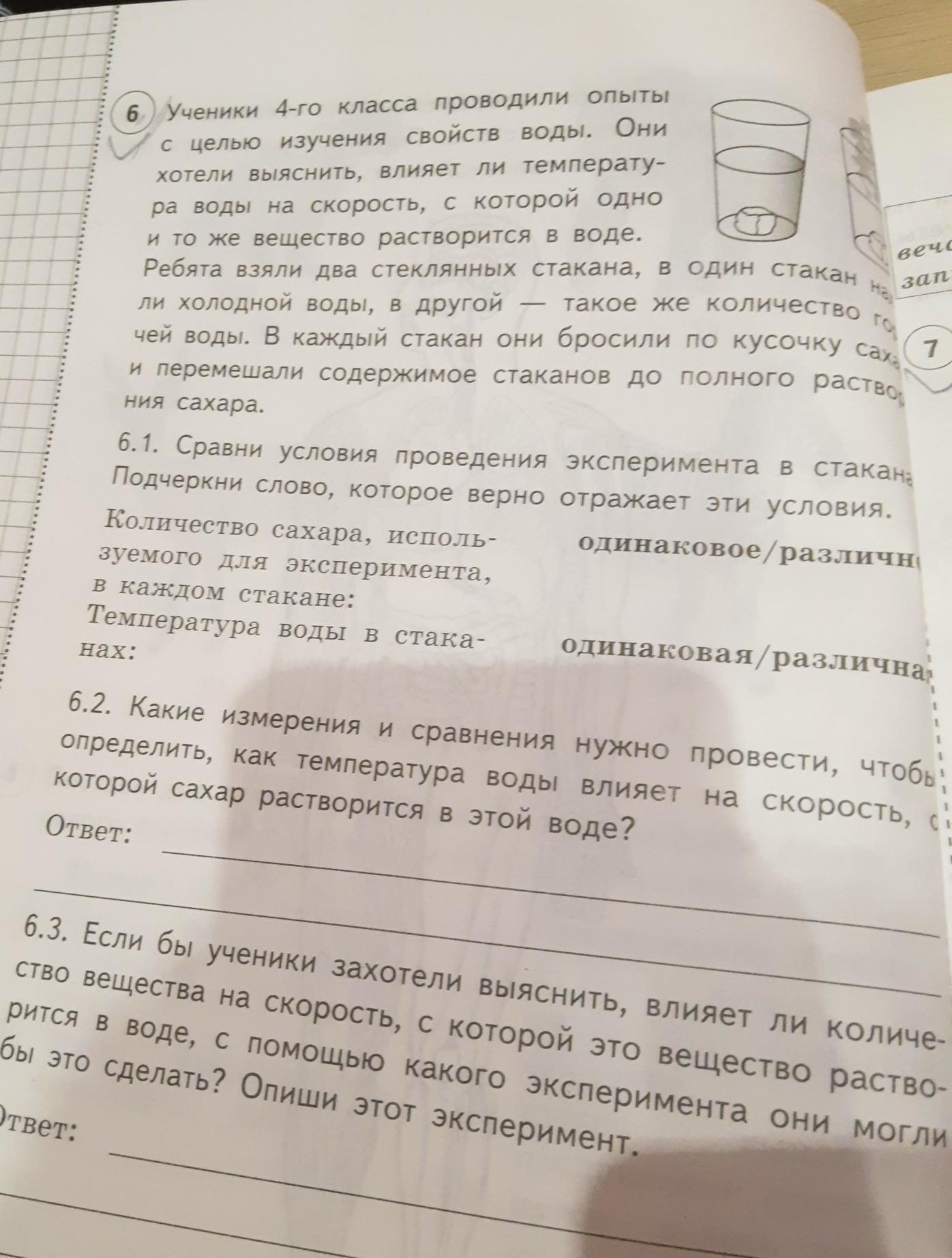 Ученики 4-го класса хотели выяснить, влияет ли количество вещества на скорость, с которой оно растворяется в в воде. Ребята взяли два стеклянных стакана, в один стакан насыпали столовую ложку крупной соли, а в другой — две столовые ложки.В оба стакана они налили одинаковое количество холодной воды из-под крана и перемешали содержимое каждого стакана до полного растворения соли