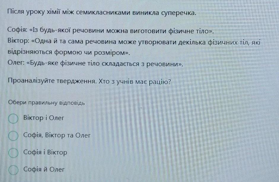 Наприклад, з речовини заліза можно виготувати декілька фізичних тіл, тому права Софія;