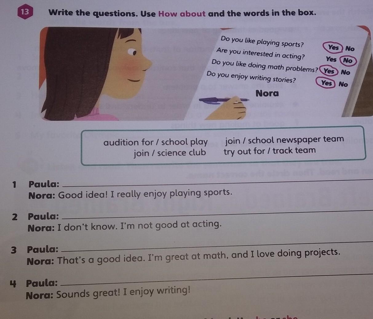write the questions, use how about and the worlds in the box. Написать вопросы на английском языке, помогите пожалуйста !!!