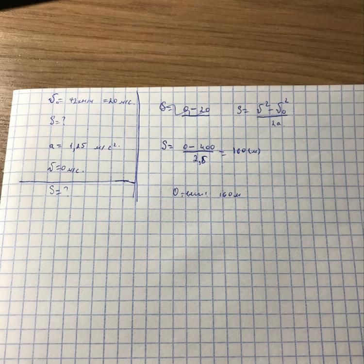 Автобус движется со скоростью 72 км/ч. На каком расстоянии от остановки водитель должен начать тормозить, если для удобства пассажиров ускорение не должно превышать 1,25 м/с2?