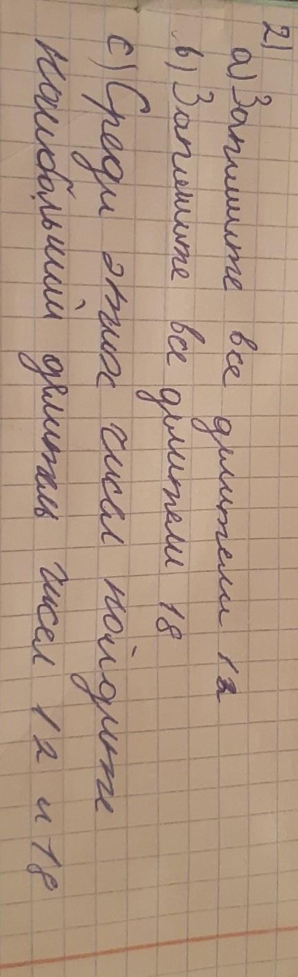 Запиши все делители 12 и запиши все делители 18 среди этих чисел найдите наибольший делитель чисел 12 и 18