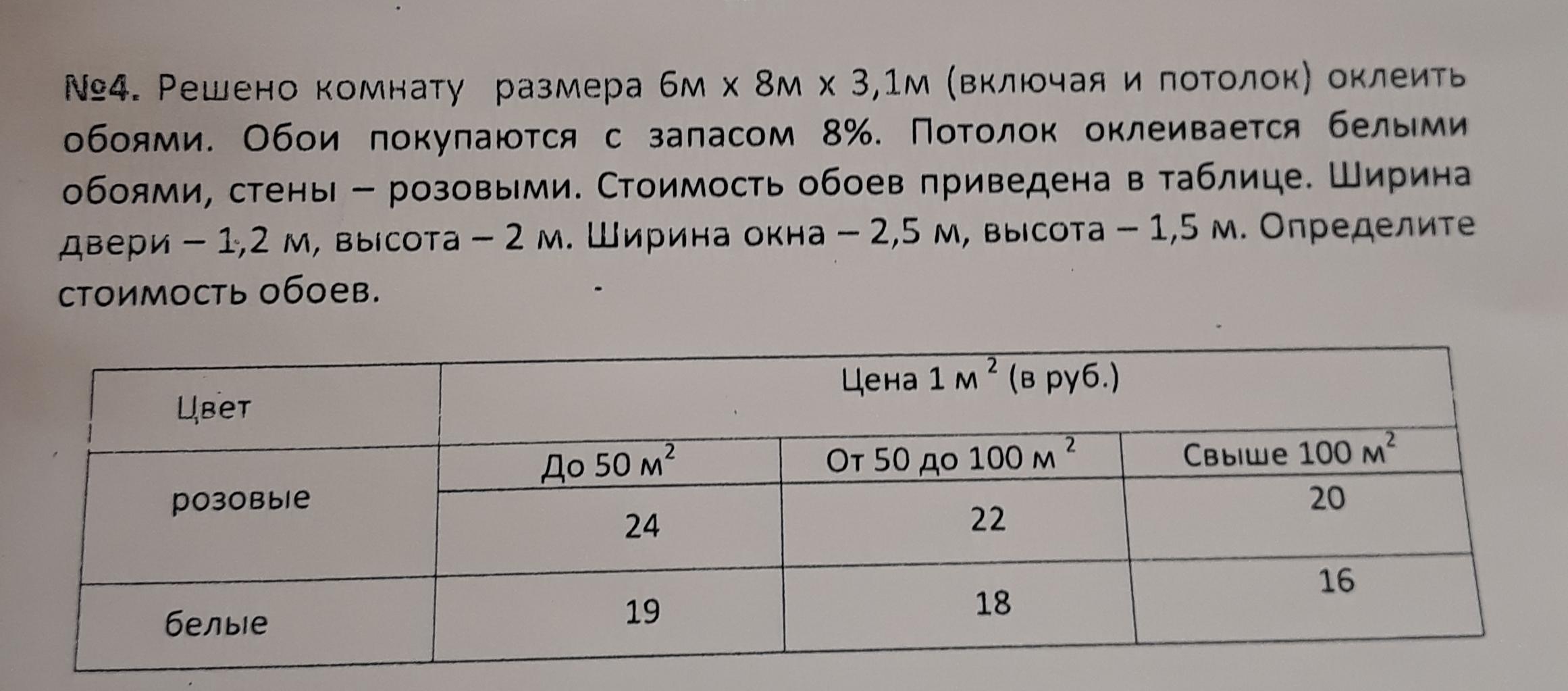 Согласно таблице стоимость 1 кв.м. белых обоев от 50 до 100 кв.м = 18 руб.