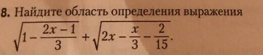 Найдите область определения выражения √1-2х-1/3 + √2х-х/3-2/15.