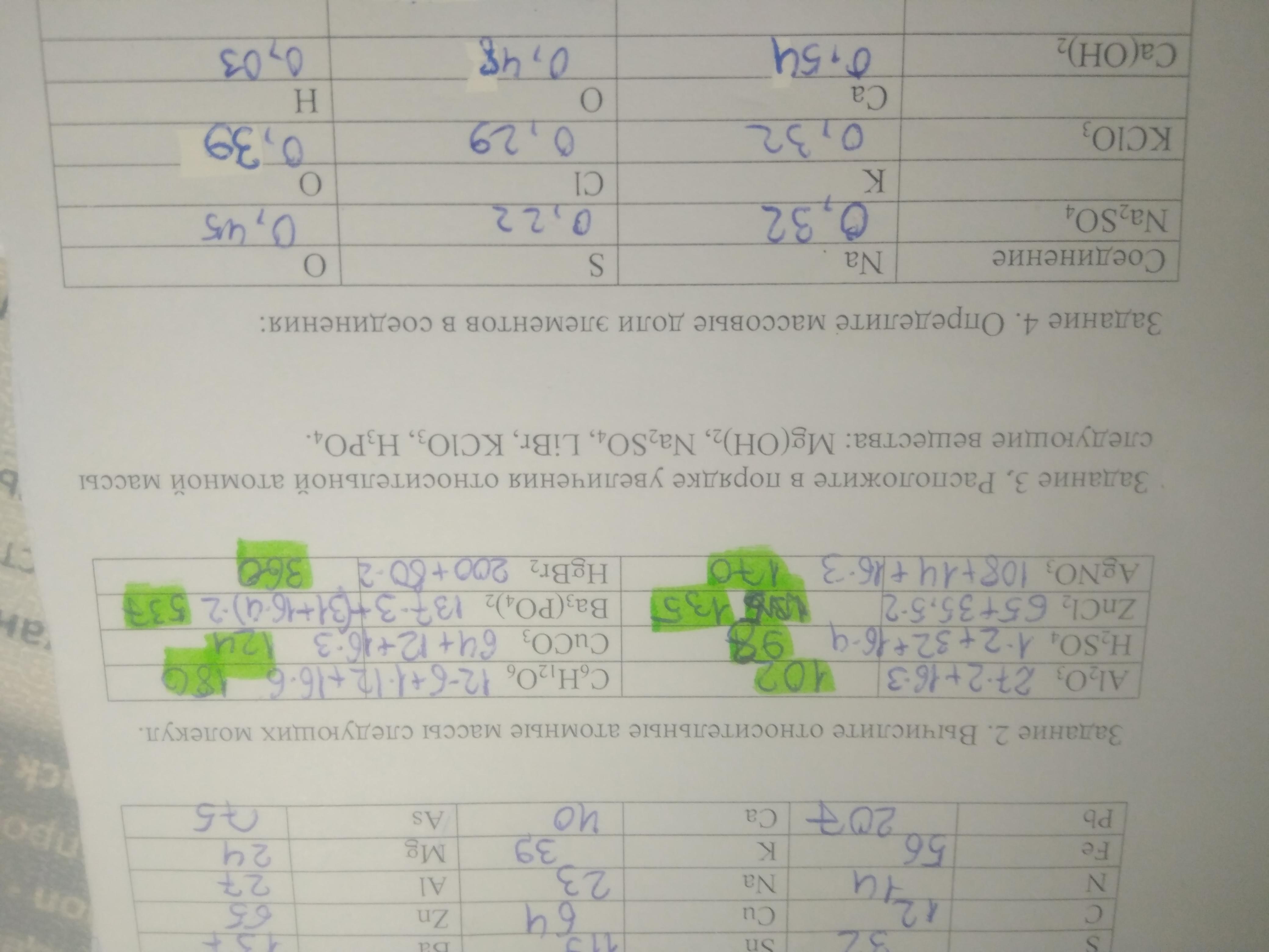 Срочно нужно найти атомные массы и расположить вещества в порядке увеличения атомной массы
