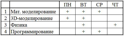 Составим таблицу, в которую внесём возможные дни проведения мастер-классов (см. рис.).