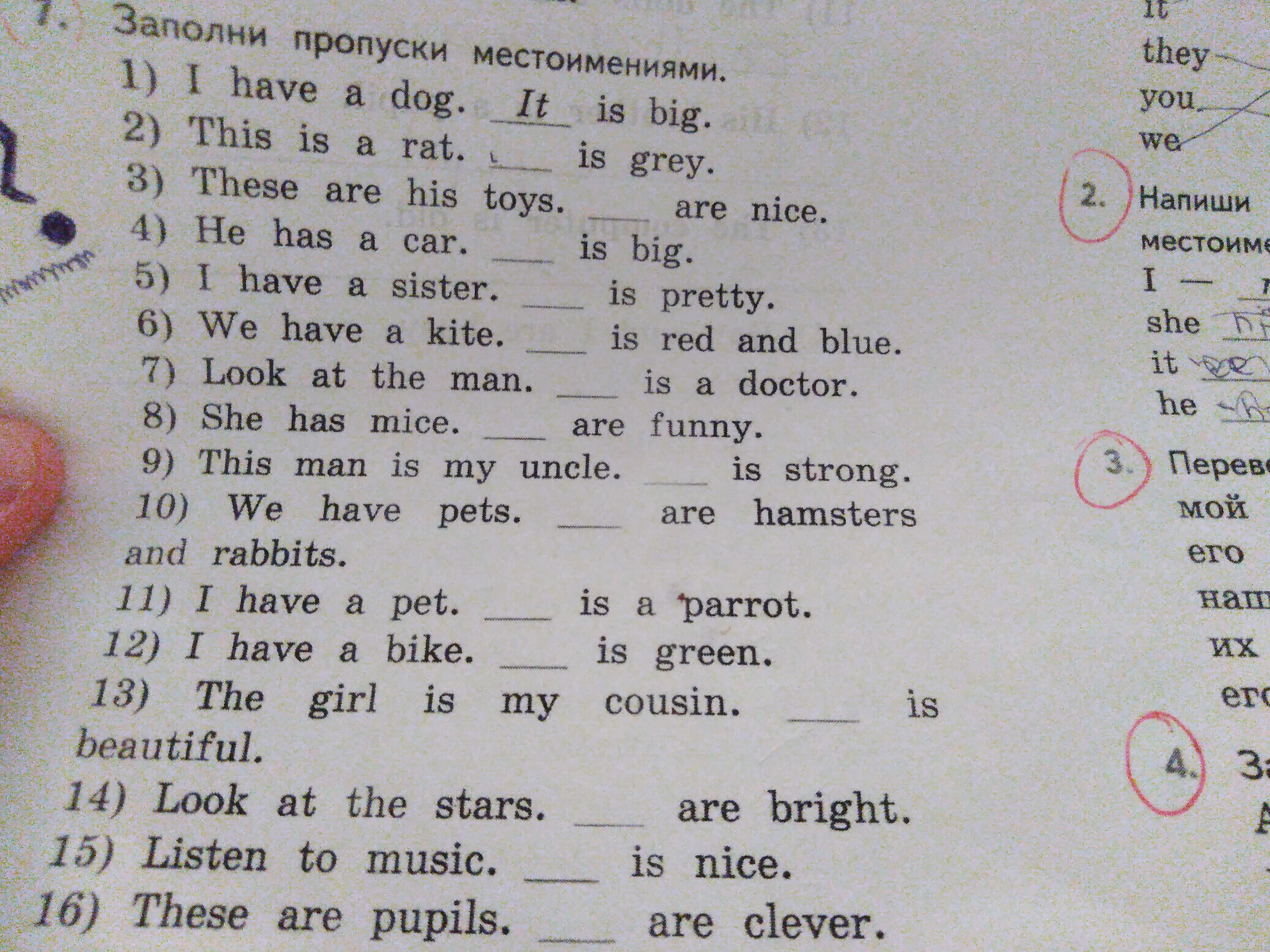 6) it ((у нас есть воздушный змей. Он красный и синий