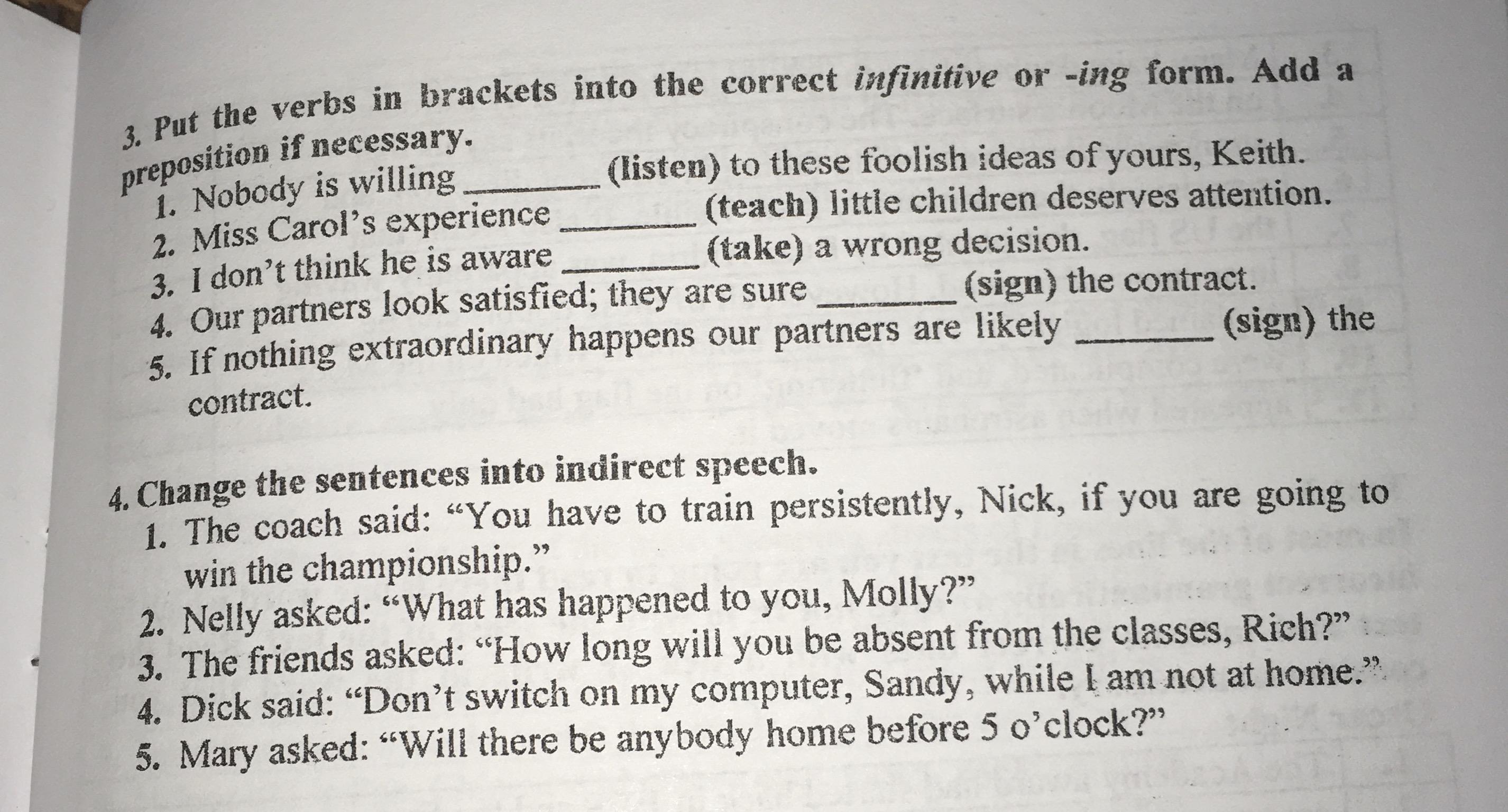 1) The coach told Nick that he had to train persistently if he was going to win the championship.