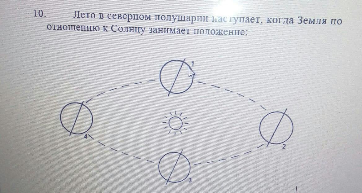 Лето в северном полушарии наступает, когда земля по отношению к Солнцу занимает положение: