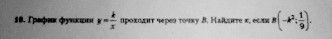 График функции y=r/x проходит через точку B найдите k если B(-k²;1/9)(если что то не понятно смотрите фото)