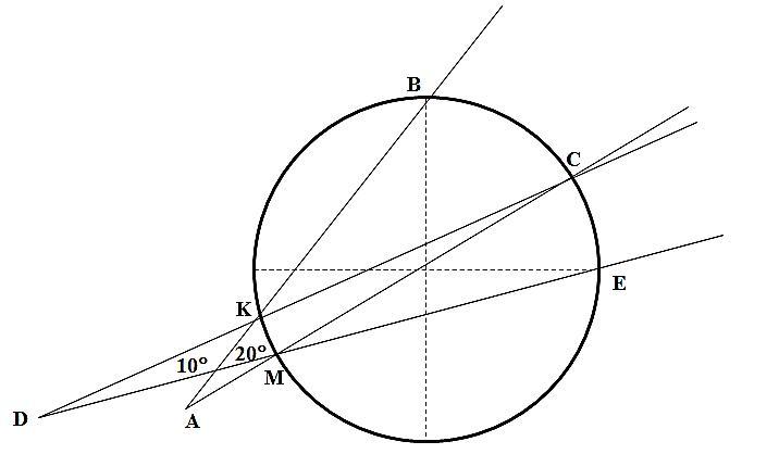 Нужно определить градусную меру щели КМ, т.е. дуги КМ.