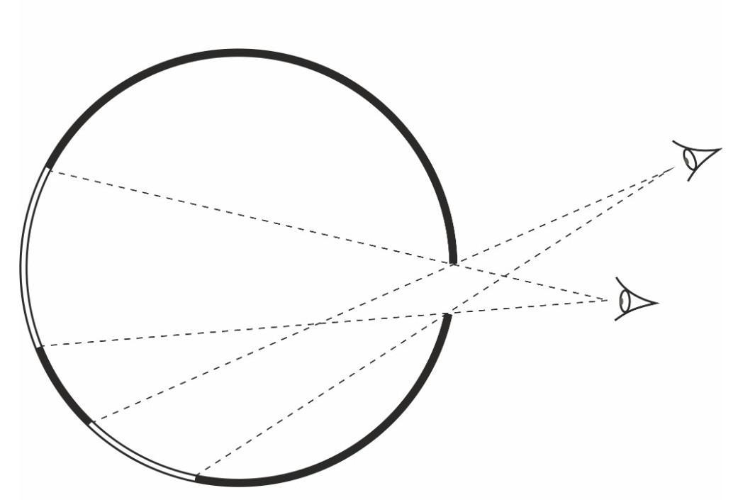 Пошаговое объяснение: На схематическом рисунке угол зрения каждого образован двумя секущими, пересекающимися вне круга