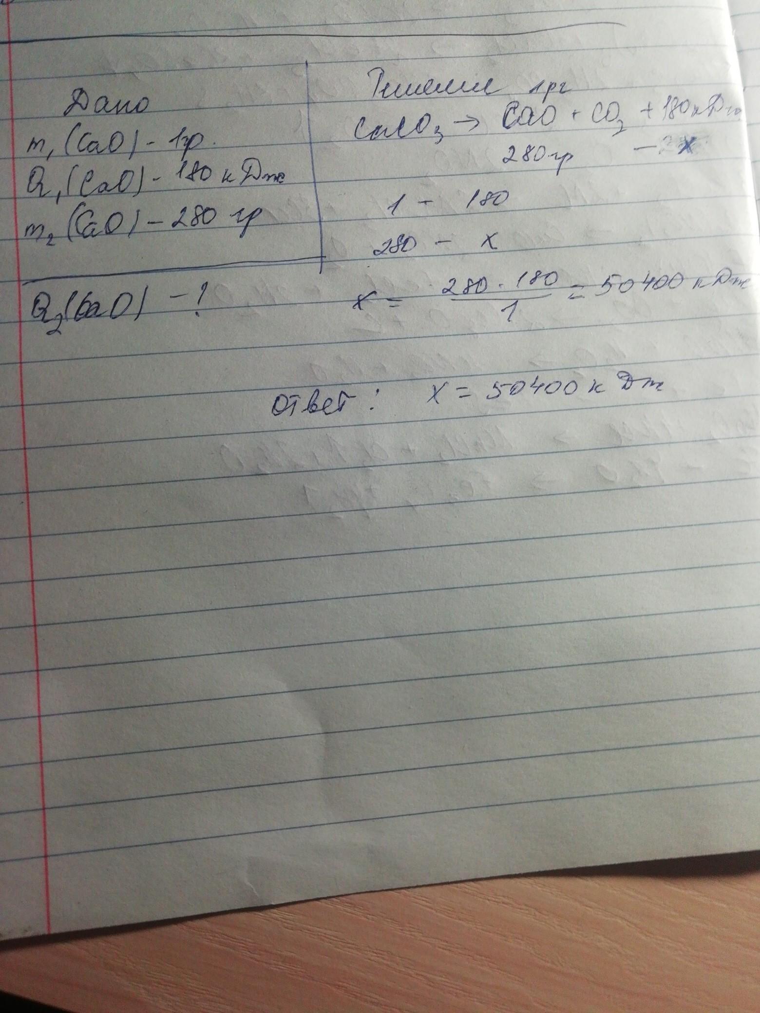 По уравнению CaCO3-CaO+CO2-180кДж . Найдите количество теплоты , которую необходимо затратить для получения 280г CaO