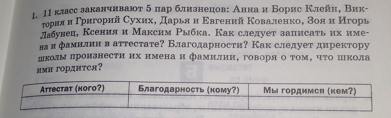 Аттестат (кого?): Анны и Бориса Клейн, Виктории и Григория Сухих, Дарьи и Евгения Коваленко, Зои и Игоря Лабунец, Ксении и Максима Рыбка...Благодарность (кому?): Анне и Борису Клейн, Виктории и Григорию Сухих, Дарье и Евгению Коваленко, Зое и Игорю Лабунец, Ксении и Максиму Рыбка...Мы гордимся (кем?): Анной и Борисом Клейн, Викторией и Григорием Сухих, Дарьей и Евгением Коваленко, Зоей и Игорем Лабунец, Ксенией и Максимом Рыбка.