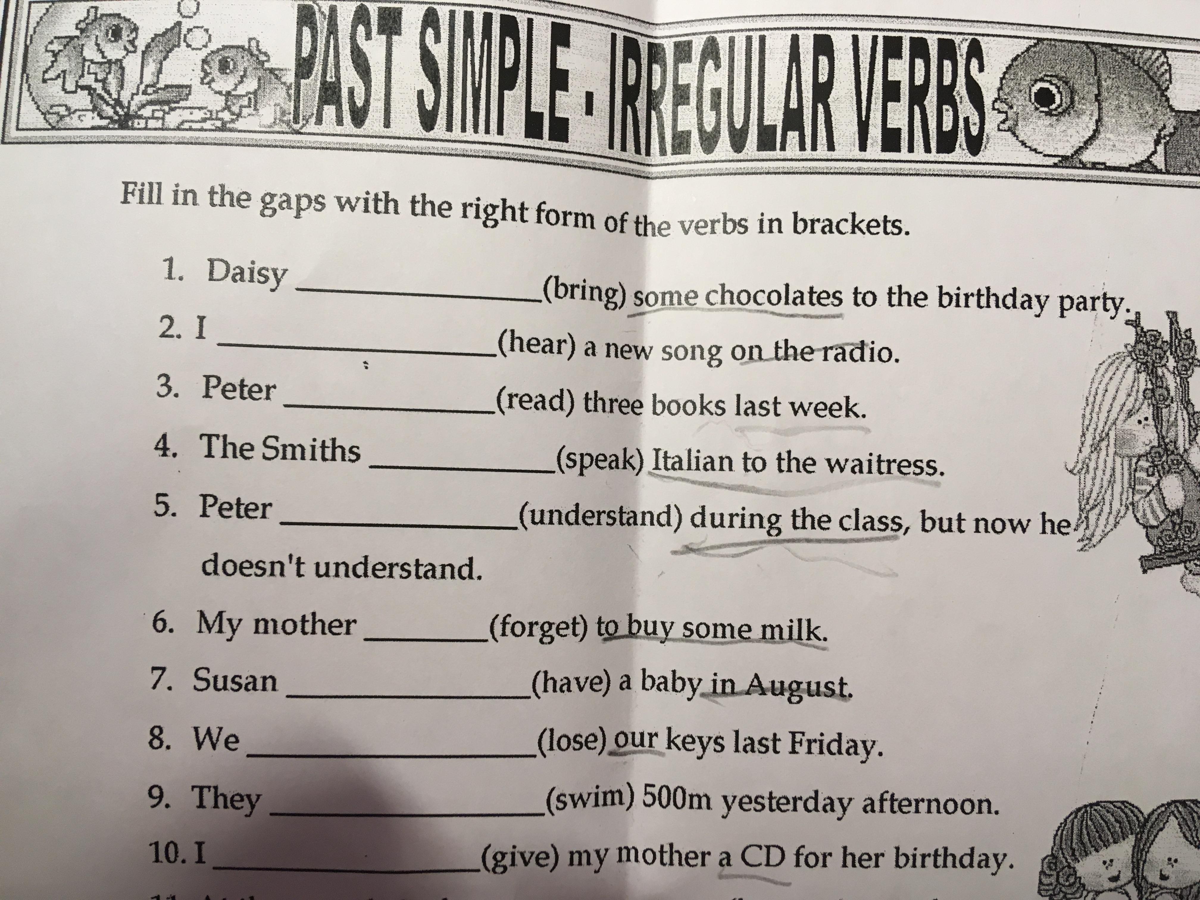 5. Peter understood during the class, but now he doesn't understand.