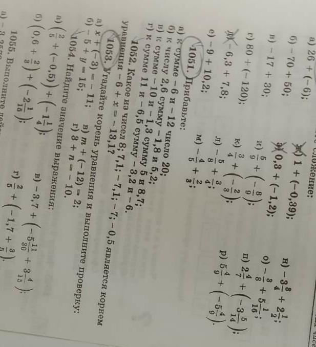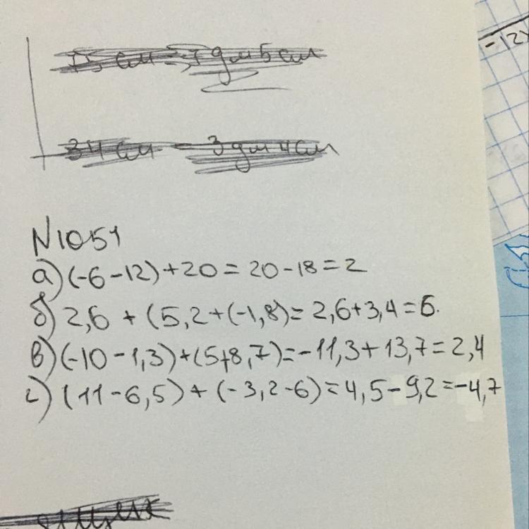 б) 2,6+(-1,8+5,2) = 2,6+3,4 = 6
