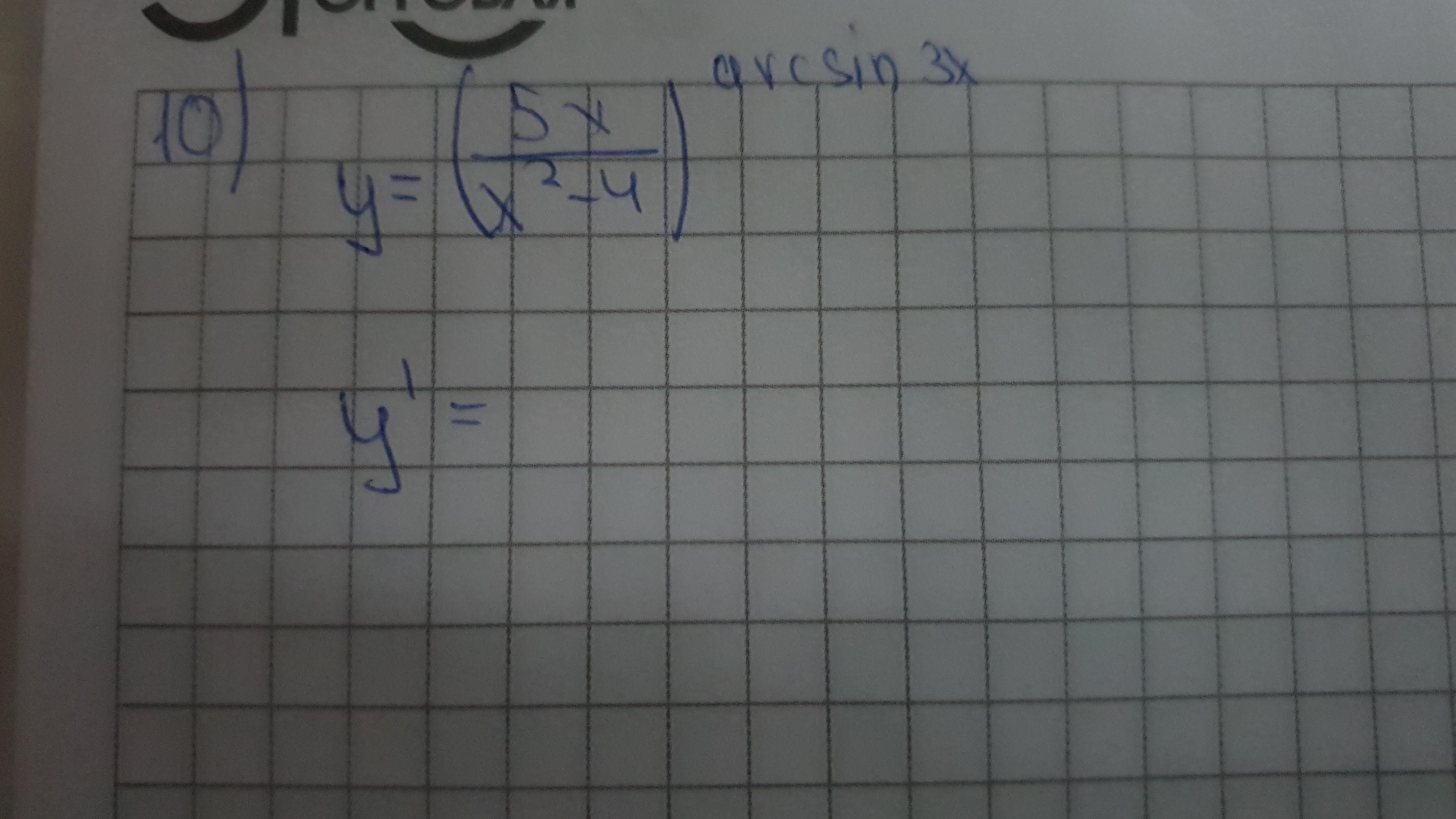 надо прологарифмировать обе части, потом от обоих частей вычислить производную, и выразить y'