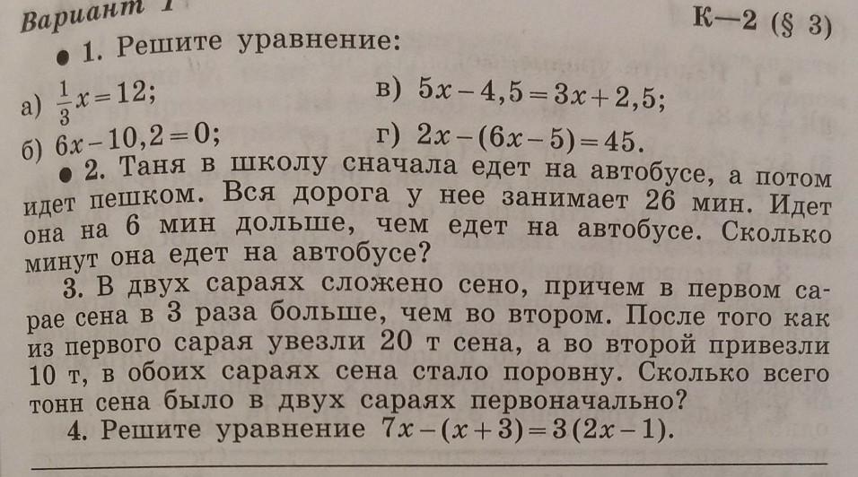 Пусть x - число сена во втором сарае. Зная, что когда в первом сарае стал на 20 т меньше, а во втором на 10 т больше, их количество стало равным, составим уравнение: