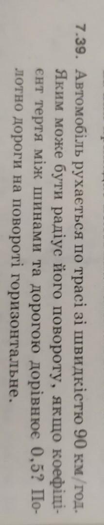 Автомобиль движется по трассе со скоростью 90 км/ч. Каким может быть радиус его поворота, если коэффициент трения между шинами и дорогой равен 0,5? Полотно дороги на повороте горизонтальное.