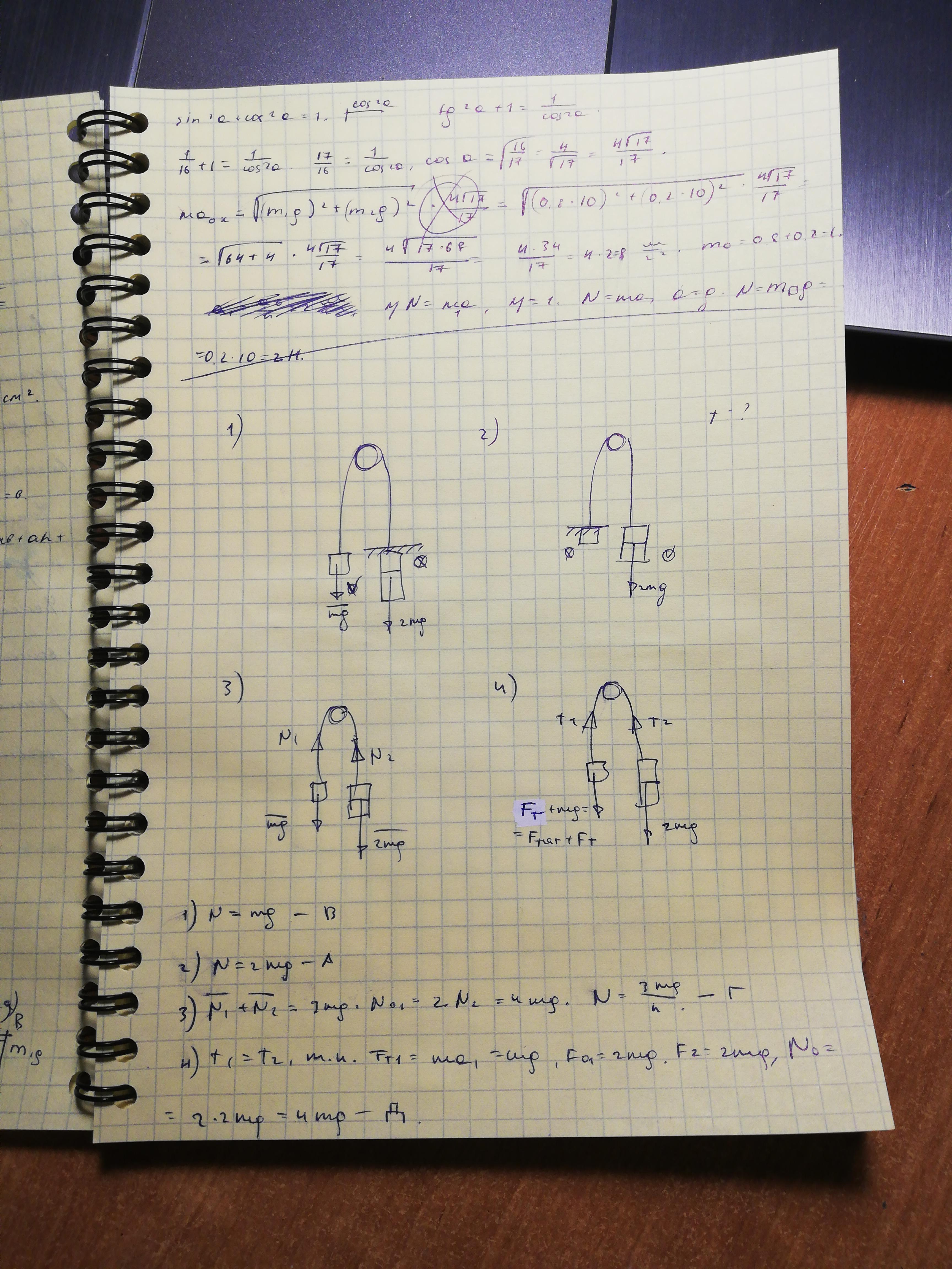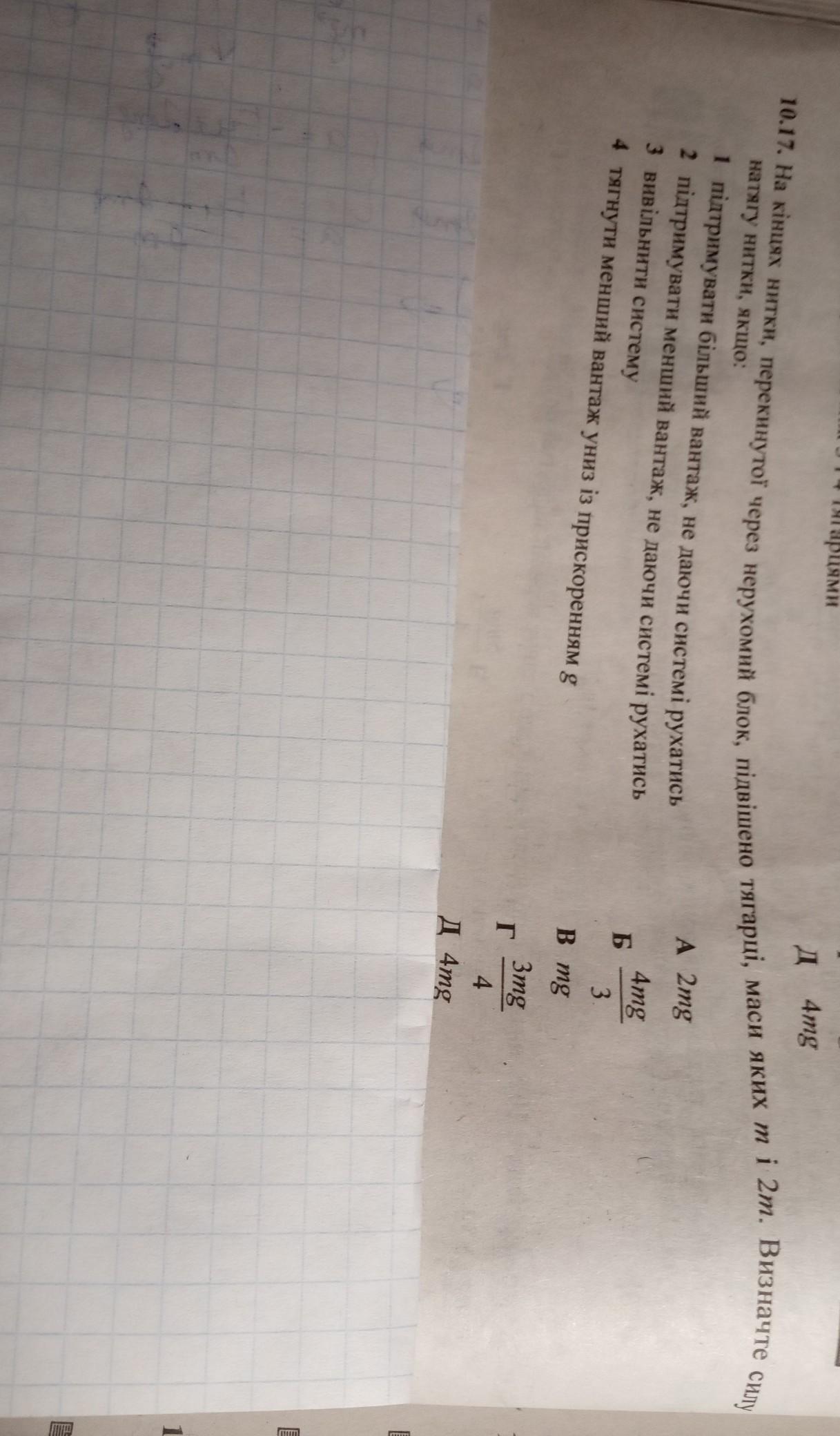На концах нити перекинутой через неподвижный блок, подвешены грузы массами 2m и m. Определите силу натяжения, если: