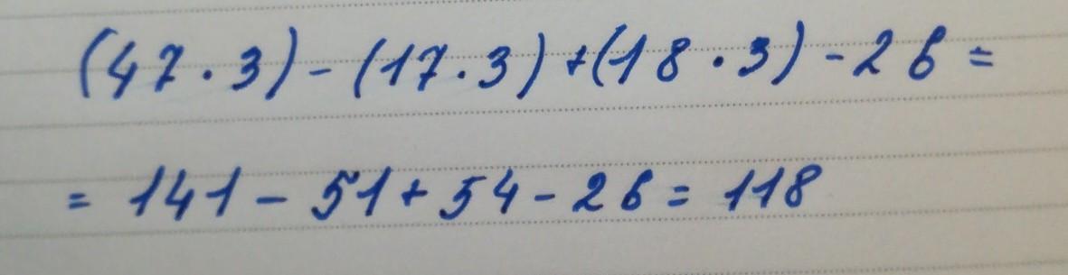 47×3-17×3+18×3-26=141-51+54-26=118
