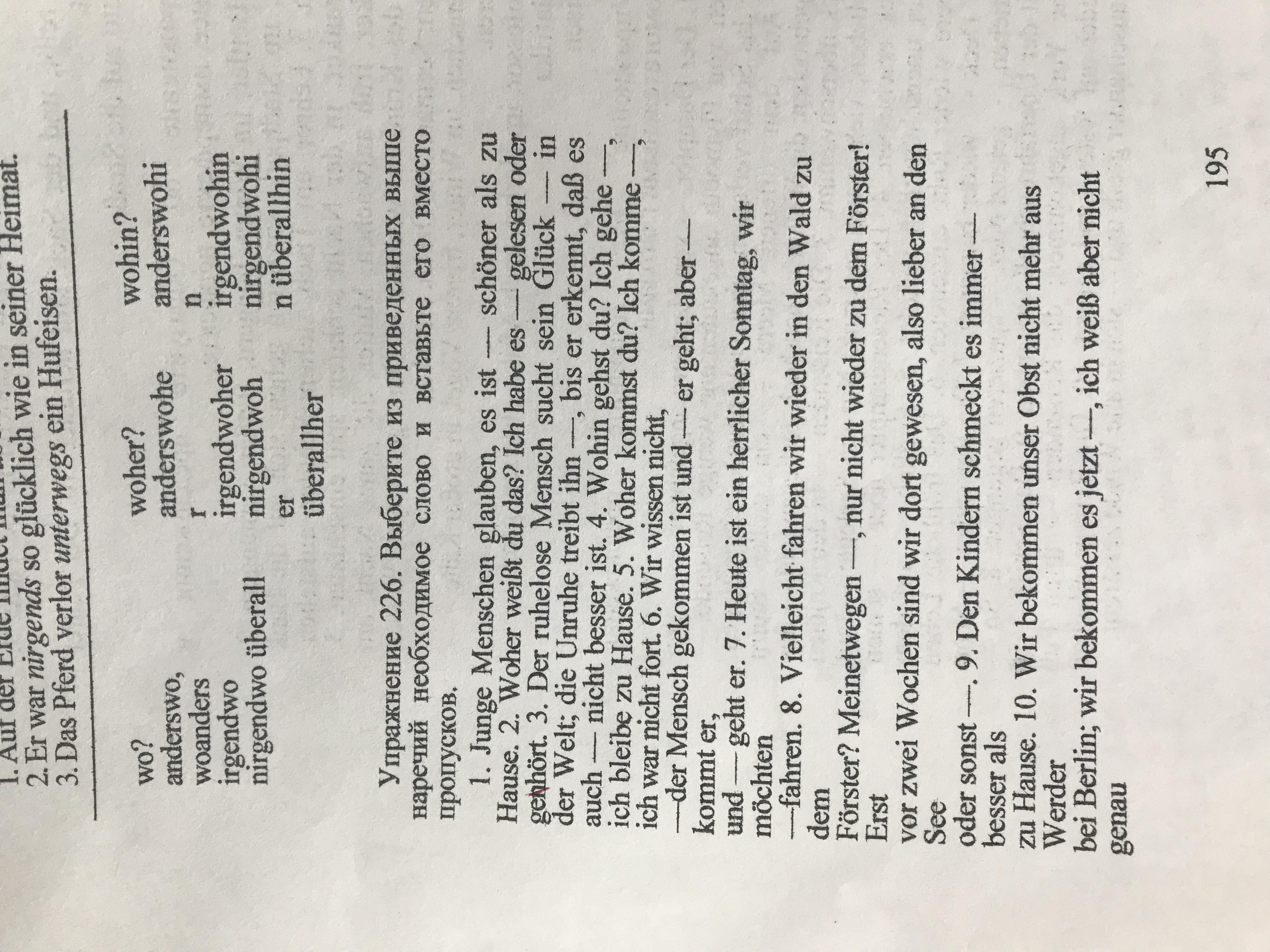 3. irgendwo in der Welt/ anderswohin (куда-нибудь в лругое место)/ überallhin (во все концы)/ anderswo (woanders)