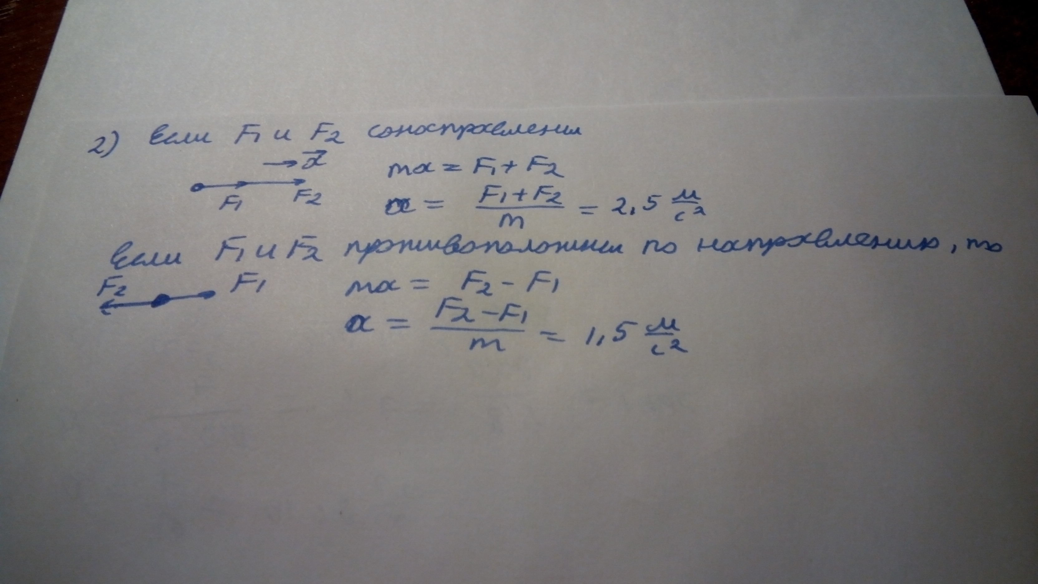 2).К телу приложены две силы:F1=0,5 H,F2=2H.Показать направление вектора ускорения.