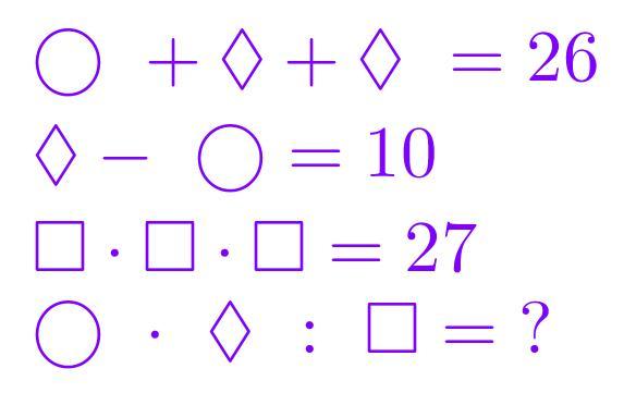 Круг * Ромб : Квадрат = 2 * 12 : 3 = 8