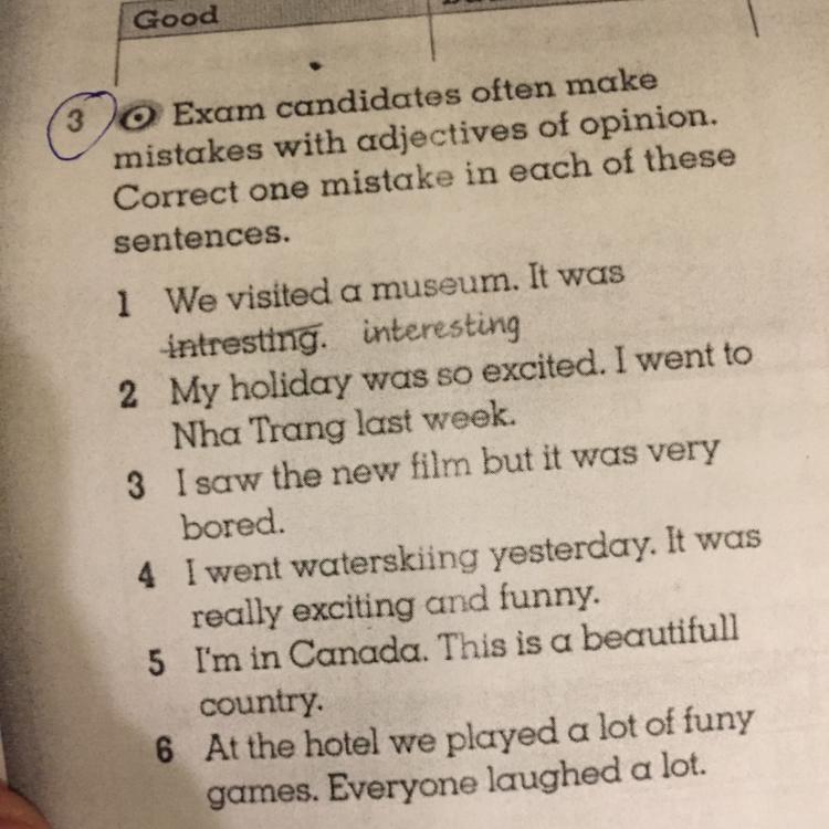 2.exciting 3.boring 4.water skiing 5.beautiful 6.funny