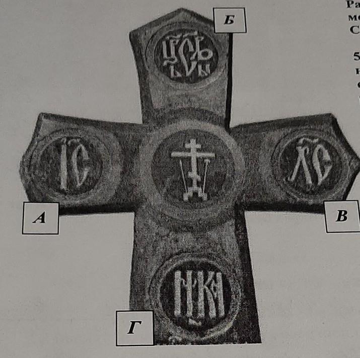 по старонам от восьмиконечного креста изображено два придмета напиши как они называются