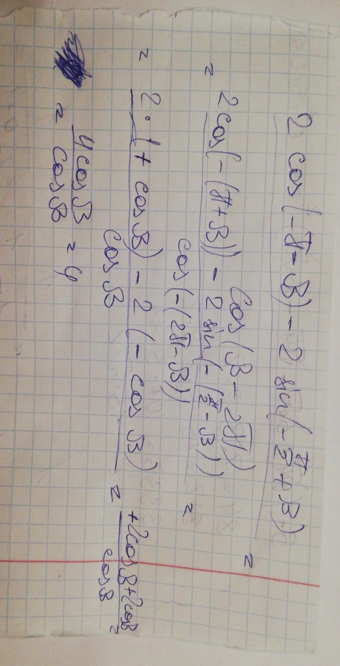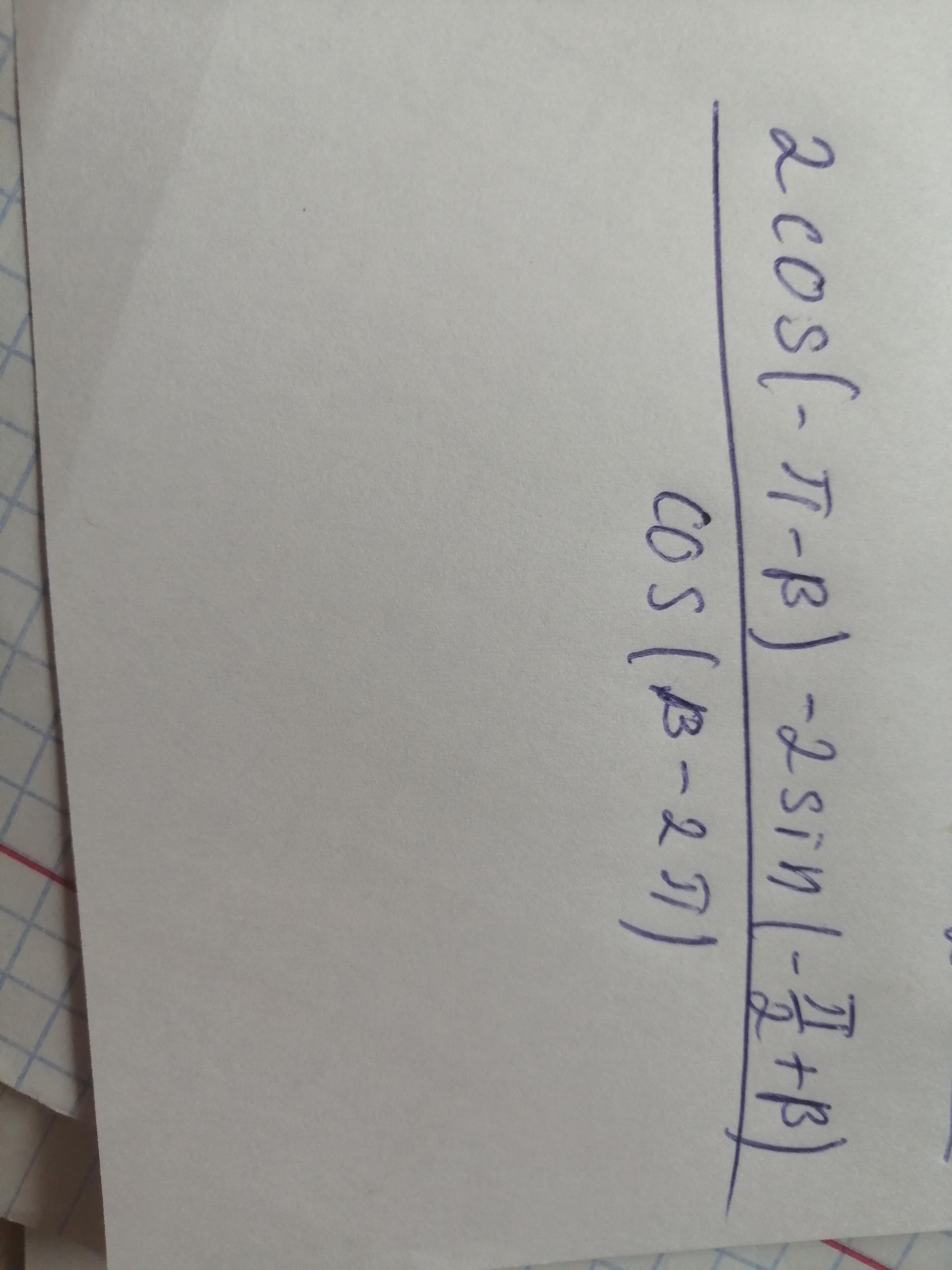 Помогите прошу!!! Вопрос жизни и смерти 2cos(-пи-B)-2sin(-пи/2+B)дробь cos (b-2пи)