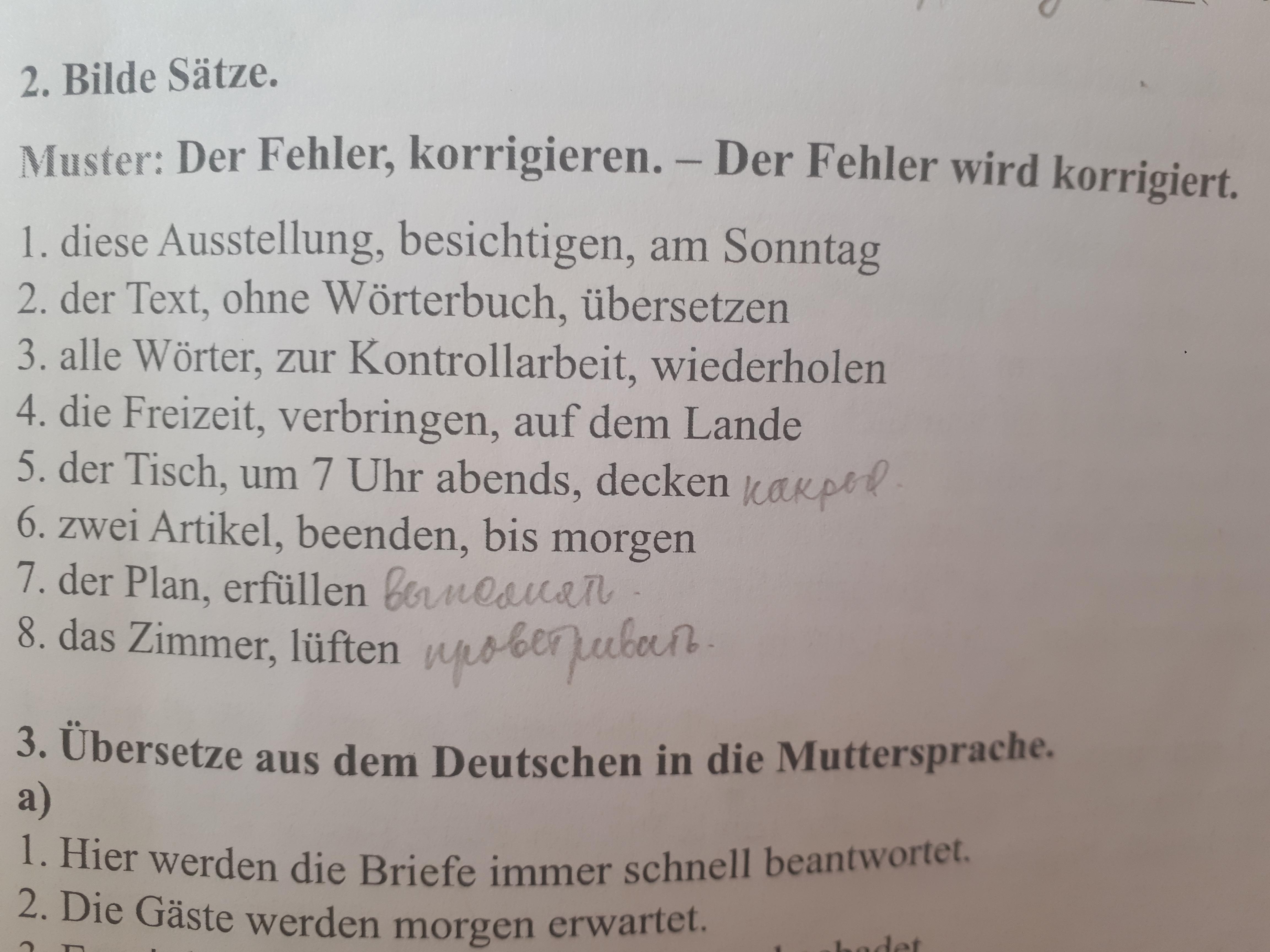 3. Zur Kontrollarbeit werden alle Wörter wiederholt.