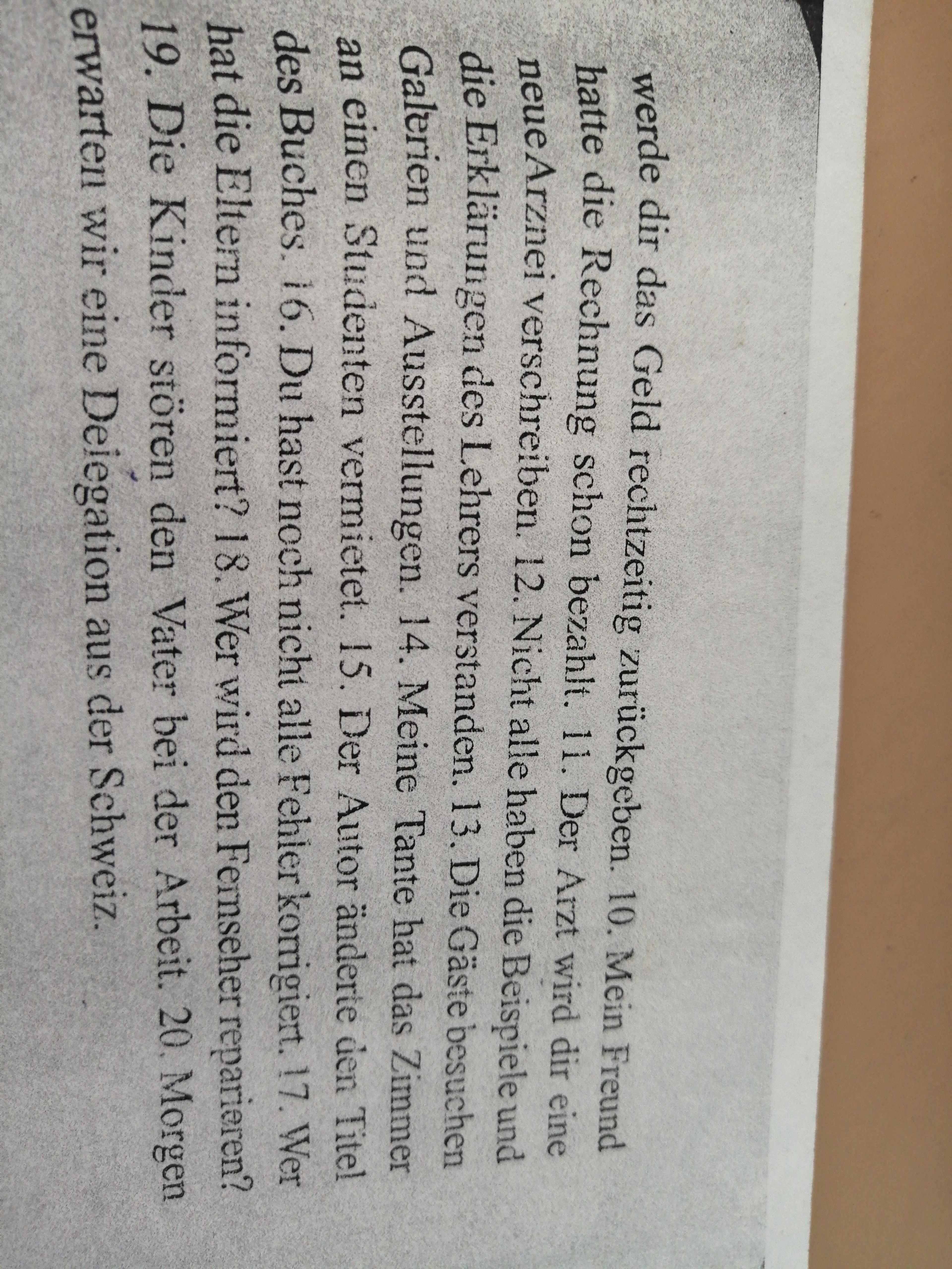 10. Die Rechnung war schon von meinem Freund bezahlt worden.