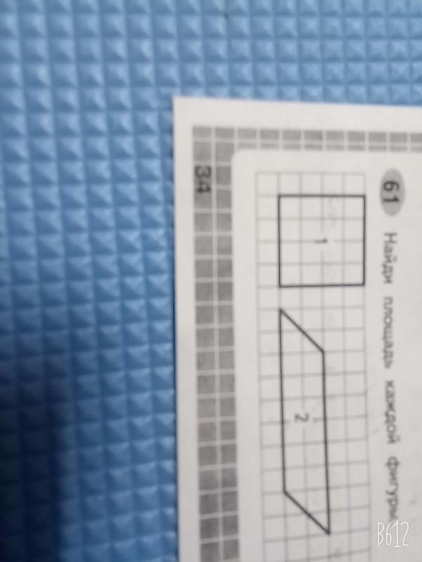 Первая фигура - квадрат. Тут все очень легко. Ты можешь посчитать сколько клеток он занимает или умножить длину одной стороны на длину соседней стороны (2*2=4). Со второй фигурой сложнее. Я предлагаю такой вариант: сначала мы найдём площадь всего прямоугольника по клеточкам(т.е. дочертим недостающие клетки), а потом вычтем то, что дочерчивали(5*1,5=7,5. Теперь вычитаем по 1 квадратному сантиметру с каждой стороны. 7,5-2=5,5 квадратных сантиметра)