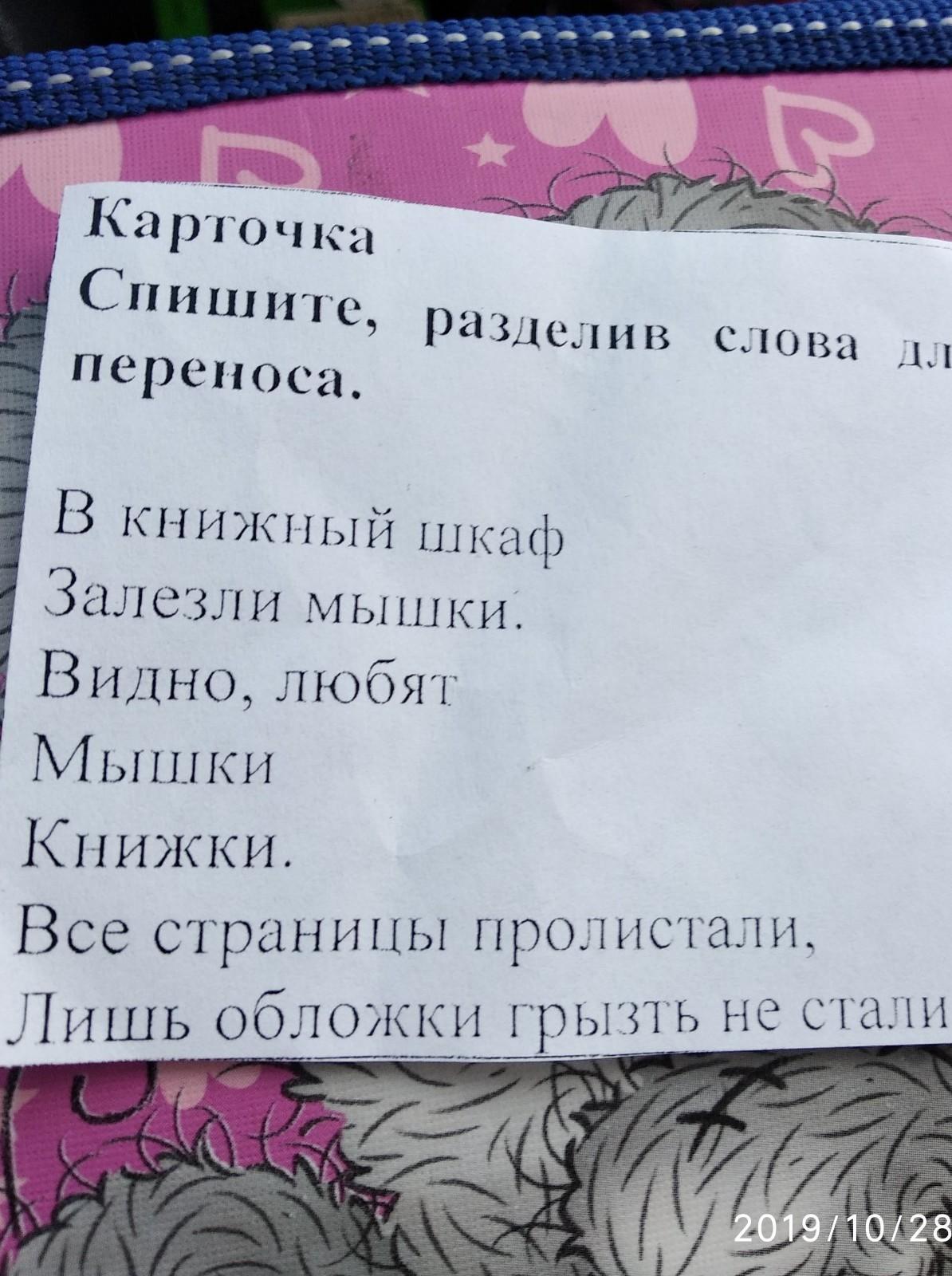 В книж-ный шкаф за-лезли мыш-ки. Вид-но лю-бят мыш-ки книж-ки. Все стра-ницы про-листали, лишь об-ложки грызть не ста-ли.