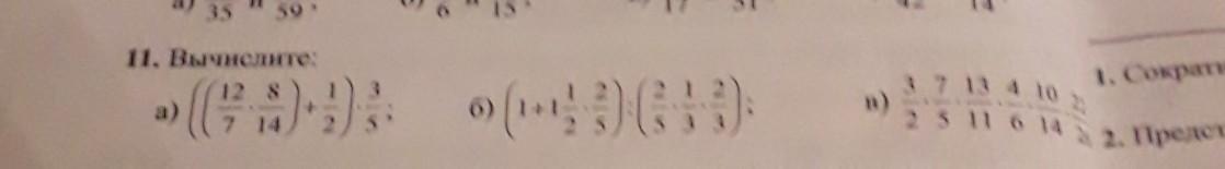 а)((12/7 × 8/14)) +1/2)×3/5=((12/7×4/7)+1/2)×3/5= (48/49+1/2)×3/5=145/98×3/5=29/98×3=87/98