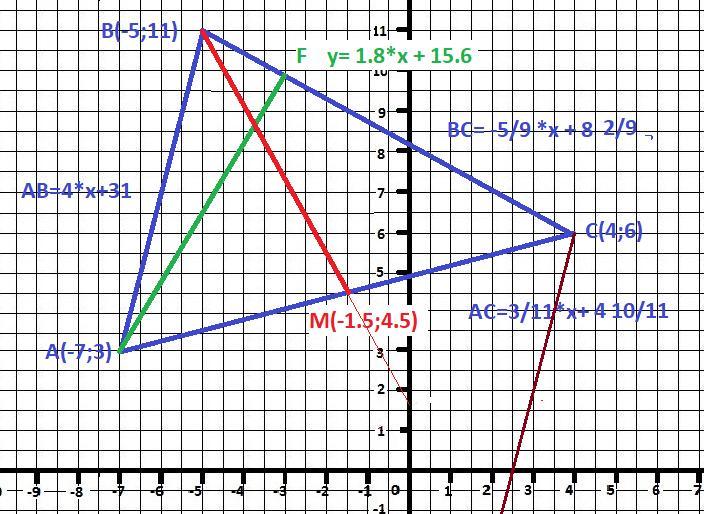 ДАНО: B(-5;11), M(-1,5;4,5)