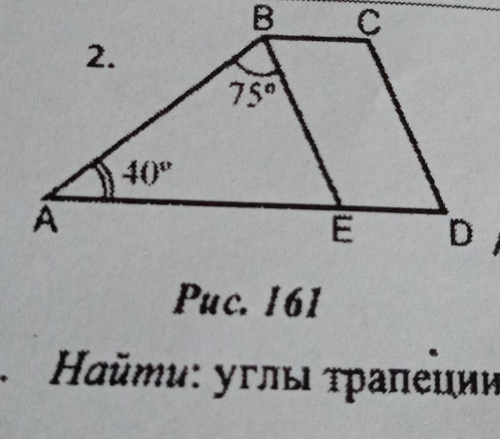 Угол аве=180-40-75=65, значит угол сда=65=евс,угол авс =65+75=140,угол всд=360-(140+65+40)=115