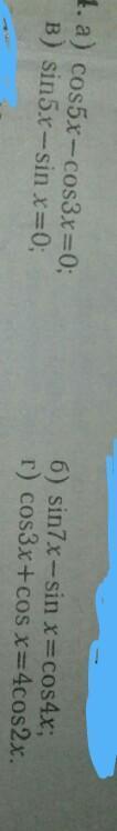 Ответ: х(1) = (пи*k) / 4; х(2) = пи*k б) sin(7x)-sin(x)=cos(4x)