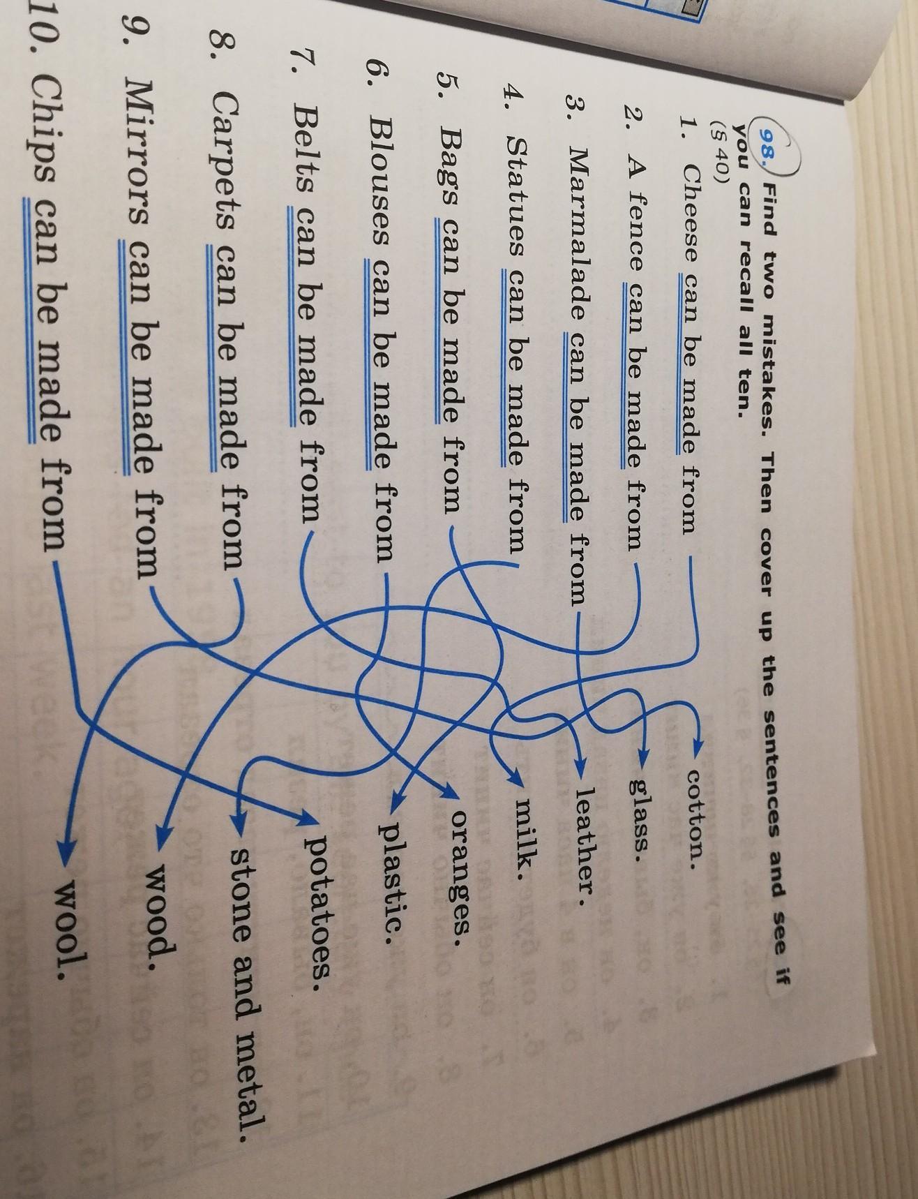 Помогите пожалуйста! дам шоколадку) Find two mistakes. Then cover up the sentences and see if you can recall all ten.