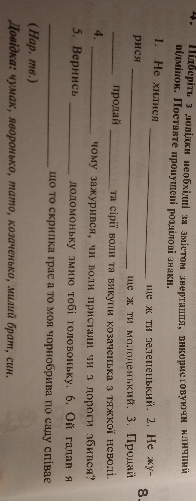 Підберіть з довідки необхідні за змістом звертання, використовуючи кличний
