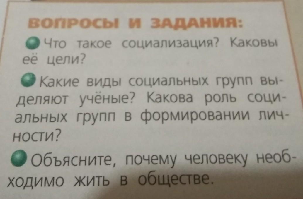 1.Социализация — это процесс получения человеческим индивидом навыков, необходимых для полноценной жизни в обществе. В отличие от других живых существ, чьё поведение обусловлено биологически, человек как существо биосоциальное нуждается в процессе социализации. Первоначально социализация индивида обычно происходит в семье, а уже потом вне её.