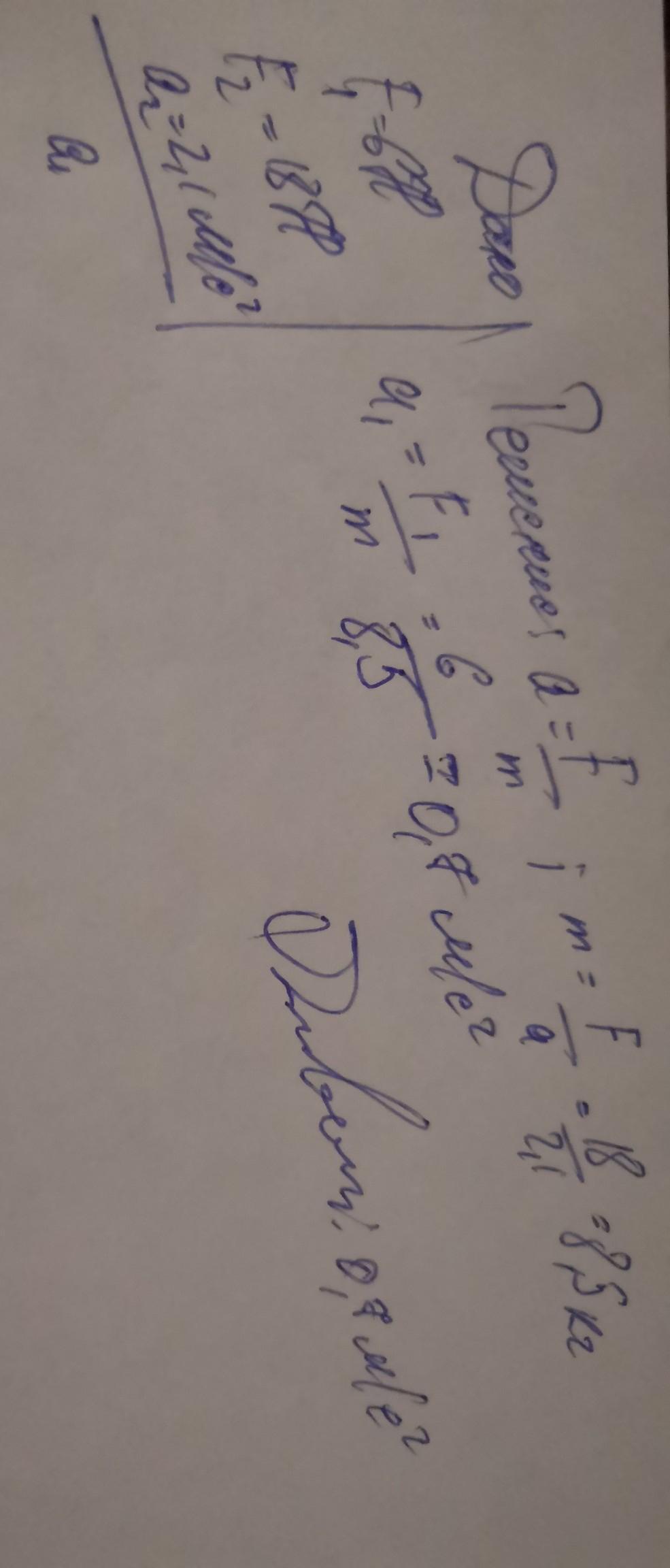 Тогда, тк масса 9, то теперь найдем F=6, тогда 6=9*a